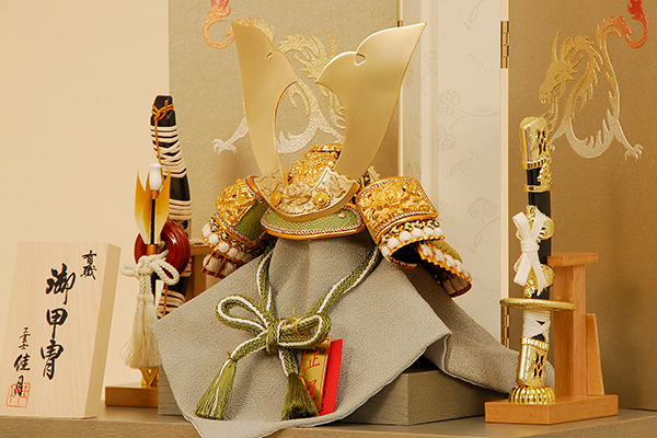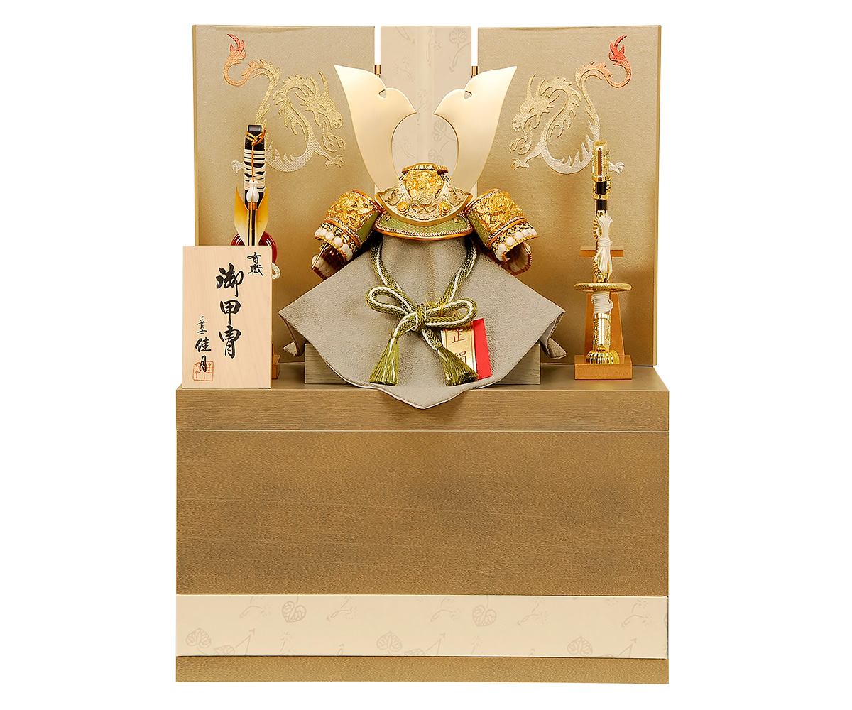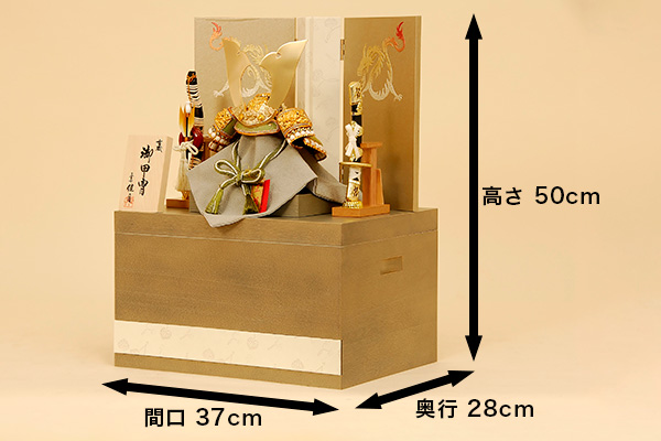 寸法 大鍬兜 大鍬兜 吹返し しころ 屏風 飾り台 弓太刀 付属品 保証書、お手入れセット一式をプレゼントいたします。お手入れ用品のひとつにも人形の佳月は、最高の品質を守り続けます。 名前札 名前札をプレゼントいたします。 お申込みハガキにお名前・生年月日など必要事項をご記入の上、ポストに投函してください。 およそ10日~14日間くらいで製造工場よりお名前プレートが直接お客様の元へ届きます。 ※ハガキは商品の外箱に保証書と一緒に張って入れてお送りいたします。 ※ハガキの再発行は出来ません。大切になくされないようにしてください。 ※お名前の間違いなどでの作り直しも出来ないのでお気を付け下さい。 商品詳細 商品名 五月人形 K-28 大鍬兜 6号 兜収納飾り 収納 収納タイプですので、飾り台が収納箱となり、その中に兜・弓太刀・屏風など一式が全て収まる便利な収納飾りです。 寸法 間口37×奥行28×高さ50(cm) 価格 ¥93,800K-28 大鍬兜 兜収納飾り