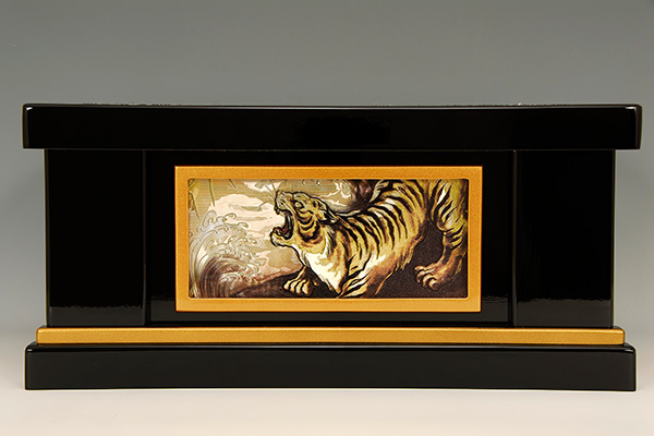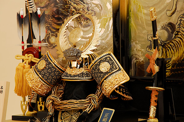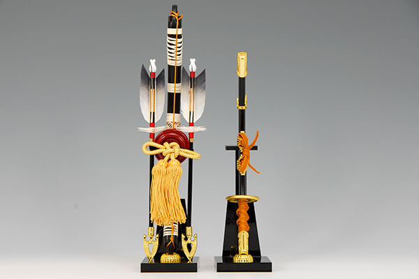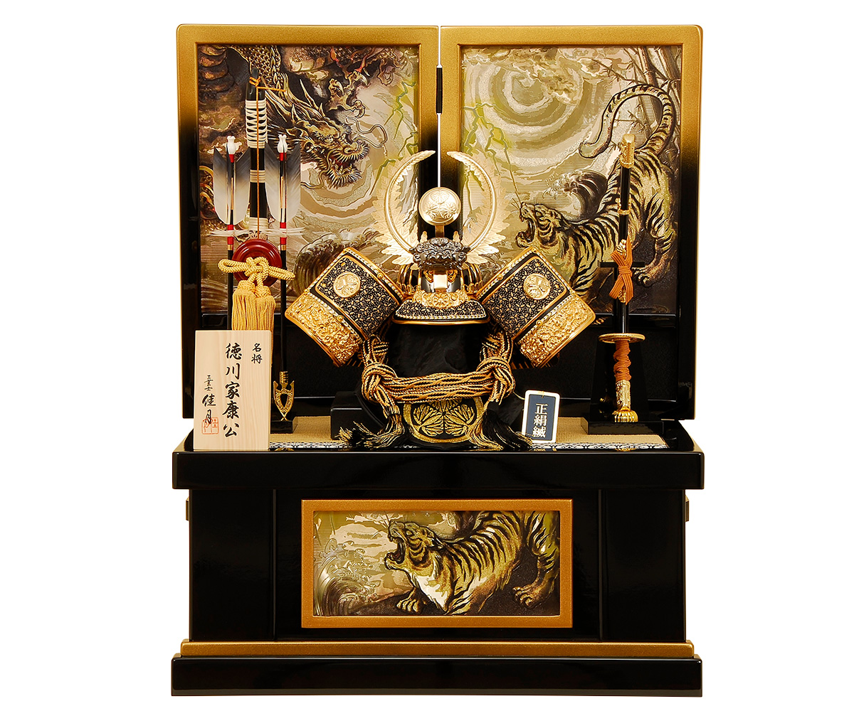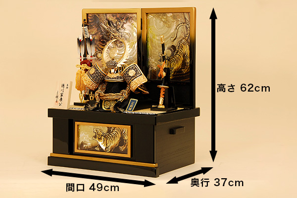 この中に兜・弓太刀・屏風など一式が全て収まる便利な収納飾りです